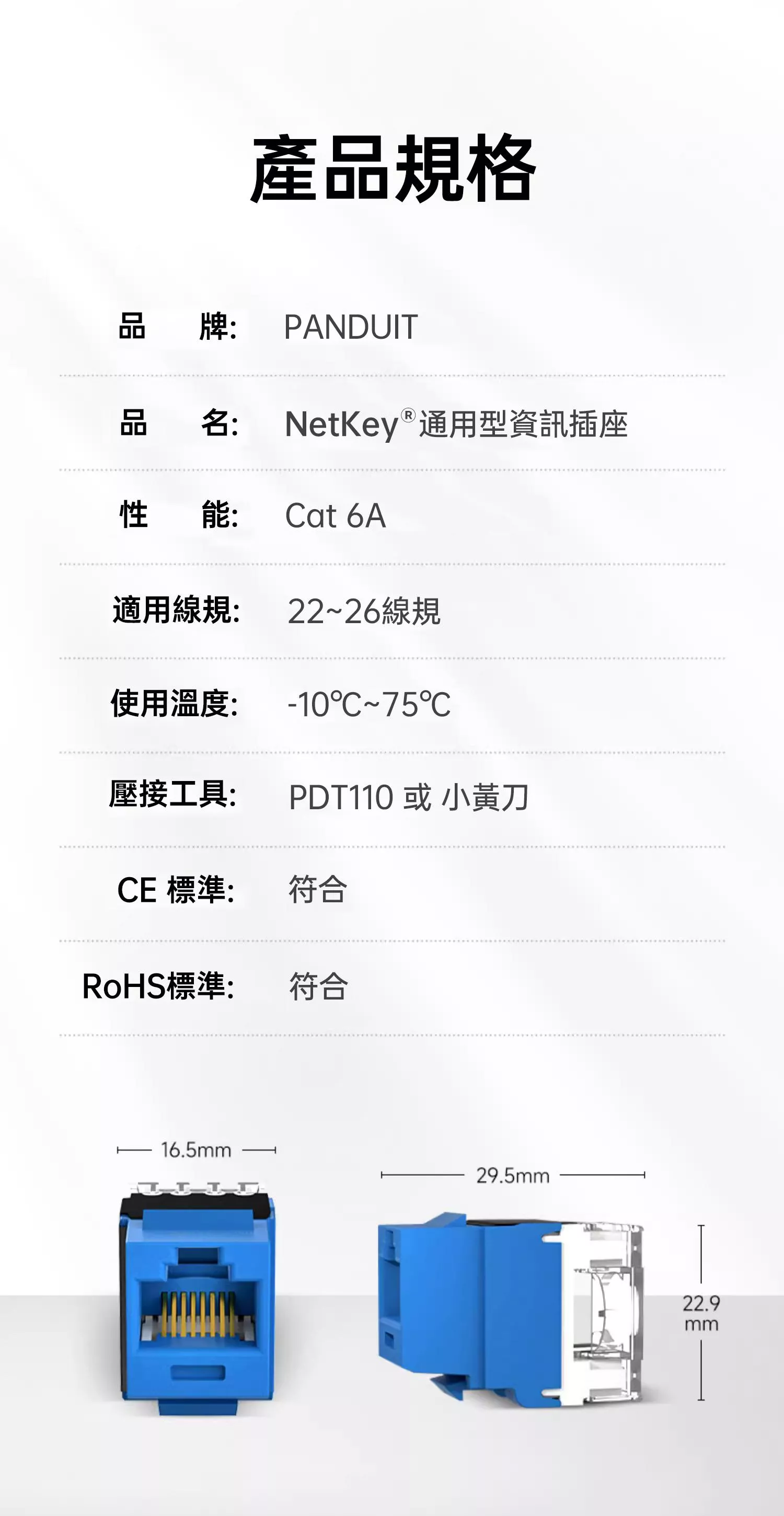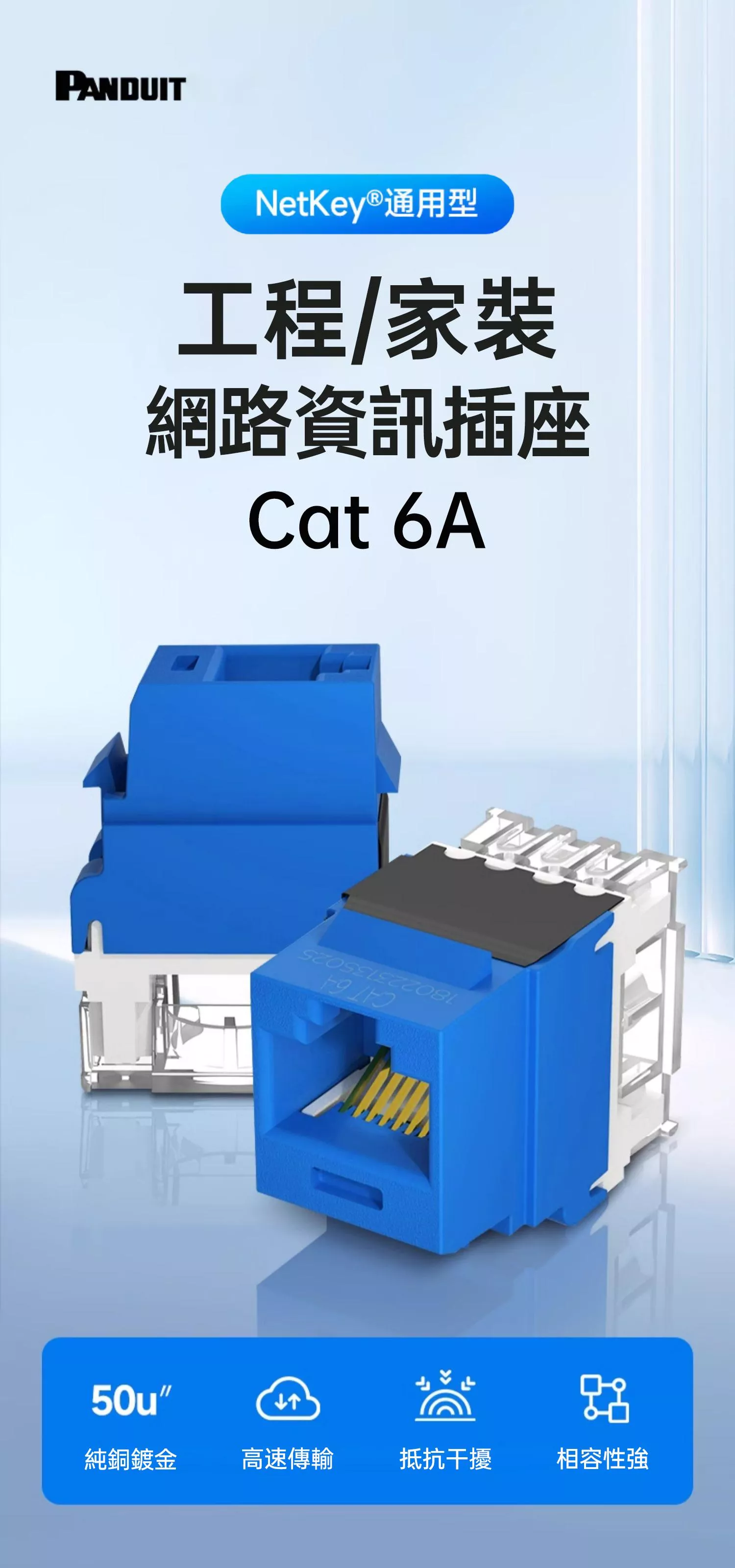 PANDUIT NetKey Cat 6A UTP 無遮蔽資訊插座 - NK6X88M (購買2個以上即贈小黃刀一只)